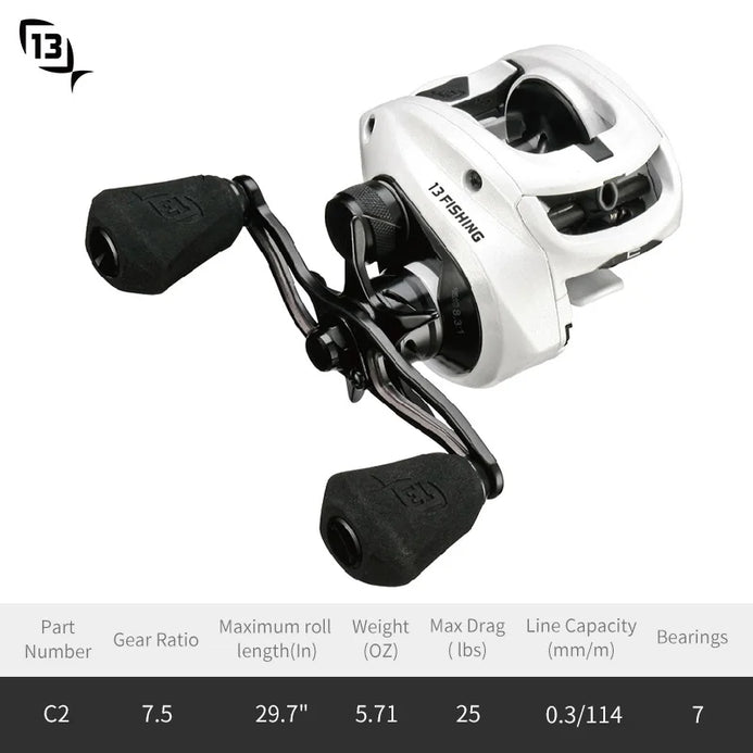 13 Fishing Concept C2 Baitcast Reel Max Drag 25LB 9BB 6.8/7.5/83 Ratios