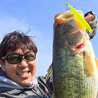 In addition, when the rod is held up and a short stroke twitch is made by the instantaneous loosening of line slack, many acrobatic actions such as “rise-up trajectory” toward the water surface, “roll fluttering” and “fluttering and darting” by fluttering the abdomen, etc. occur. In other words, ONETEN SR is a rising special that produces the most diverse bite patterns in the shallowest areas just below the water's surface, dramatically expanding the feeding zone. The outstanding fish response can also be seen on the live scope.
