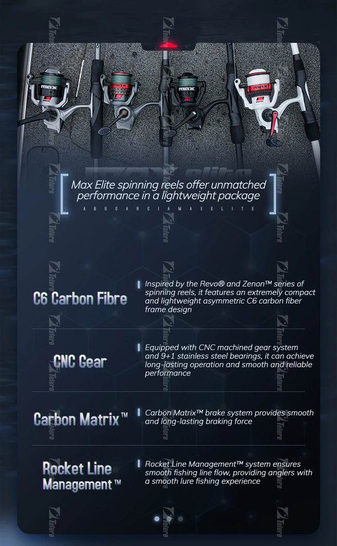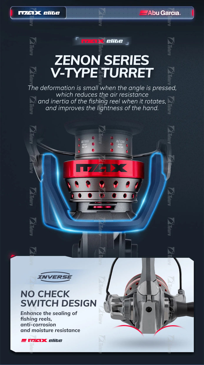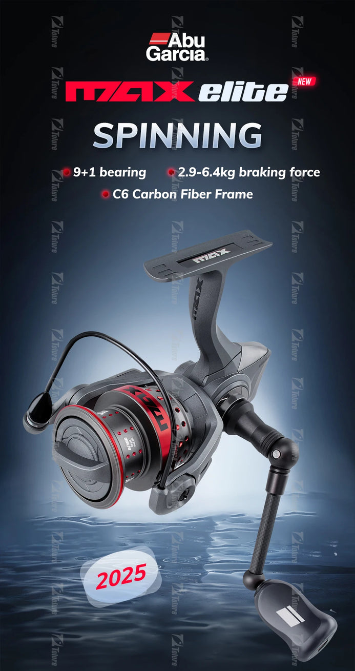 Abu Garcia Max Elite Spinning Reel 6.2:1 9+1BB Max Drag 2.9-6.4KG Zenon Series V-TYPE Turret C6 Carbon Fiber Frame