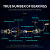 1. Light & Power Technology: Ultra-thin Body Design and CNC Machined Aluminum Spool is ideal for long time fishing.