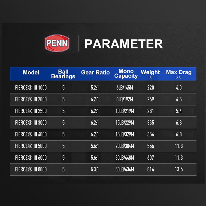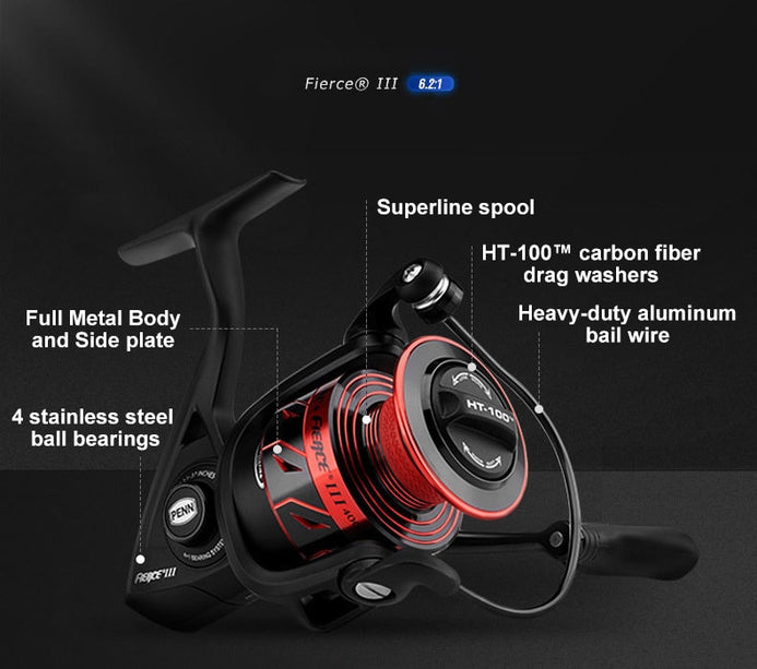 PENN FIERCE III Spinning Reel 6.2:1/ 5.6:1/5.3:1 4+1BB 4.5-13.6Kg Max Drag