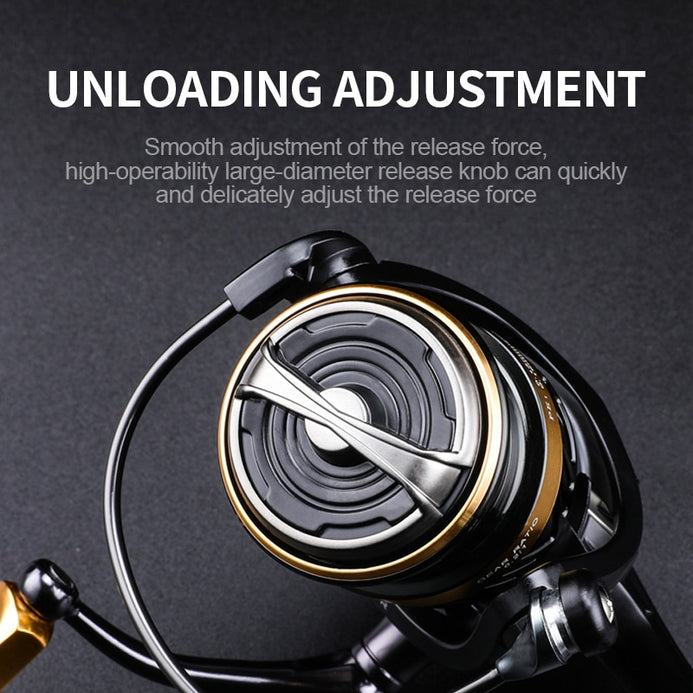 1. Light & Power Technology: Ultra-thin Body Design and CNC Machined Aluminum Spool is ideal for long time fishing.