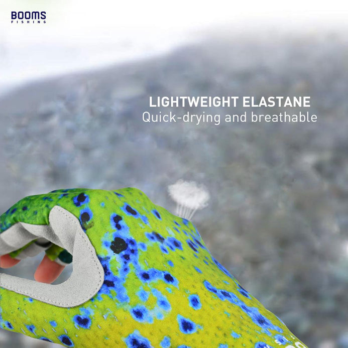 Booms Fishing's FG2 Fingerless Gloves provide a secure, comfortable fit and superior gripping ability with their spandex and microfiber construction and elastic straps. The gloves are also lightweight, quick-drying, breathable, and feature an anti microbial material to ensure breathability in any condition. These are the perfect choice for any angler.
