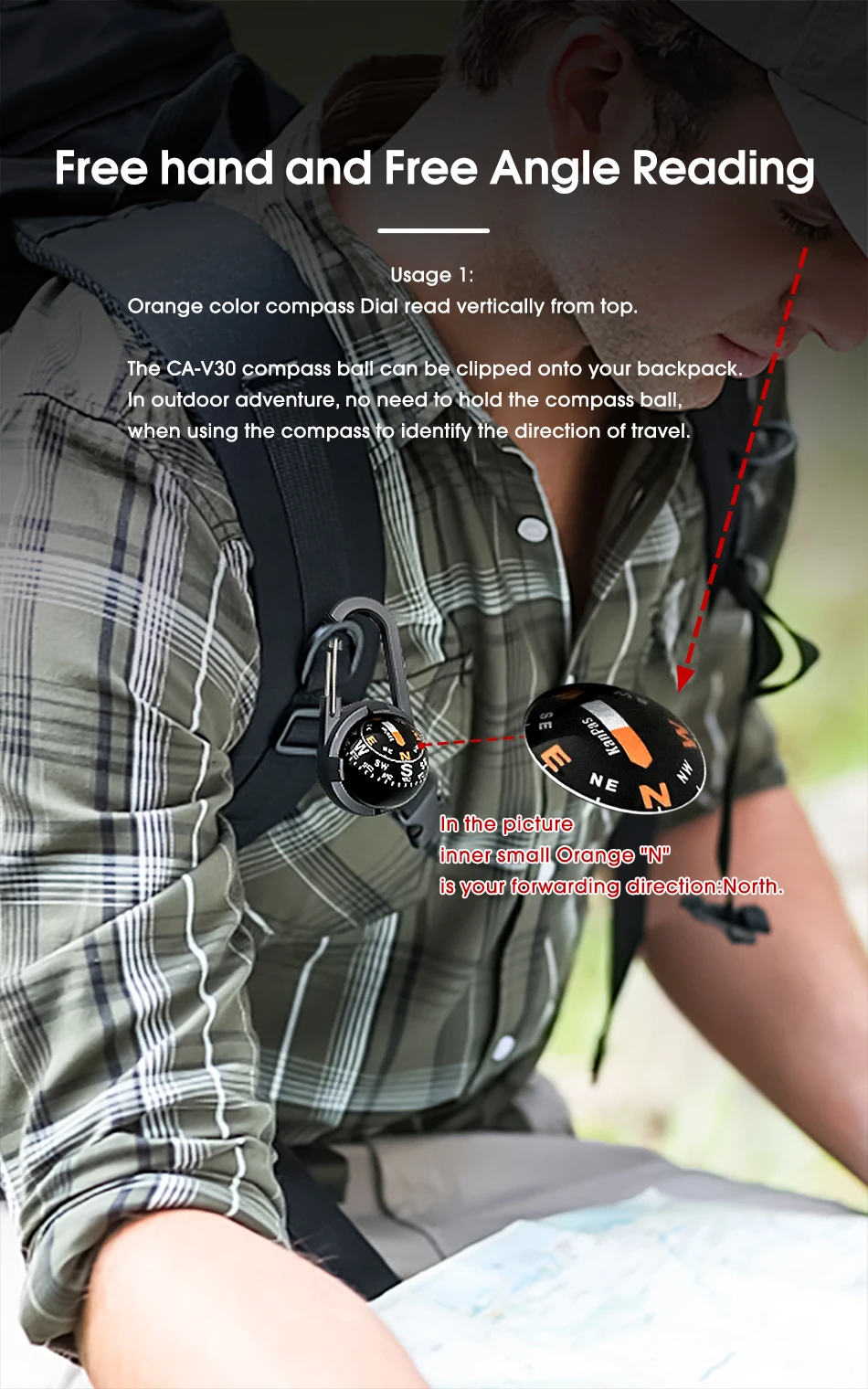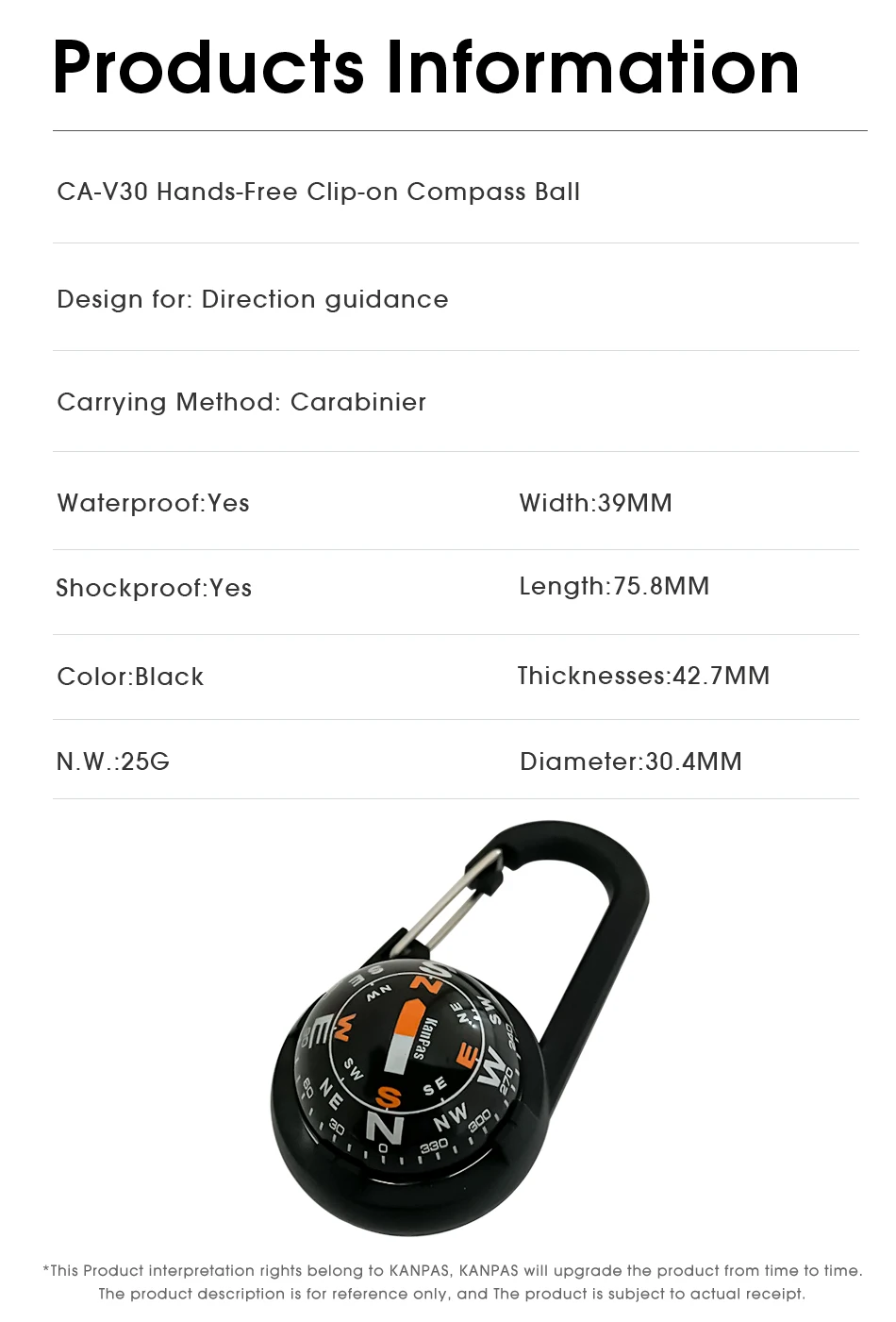 Kanpas Waterproof Carabiner Compass CA-V30/L/37