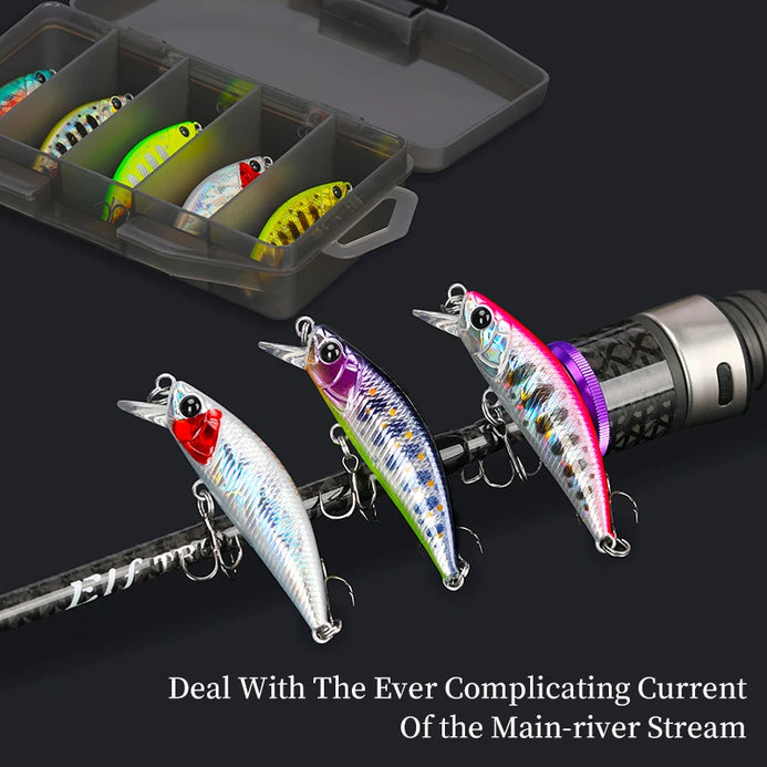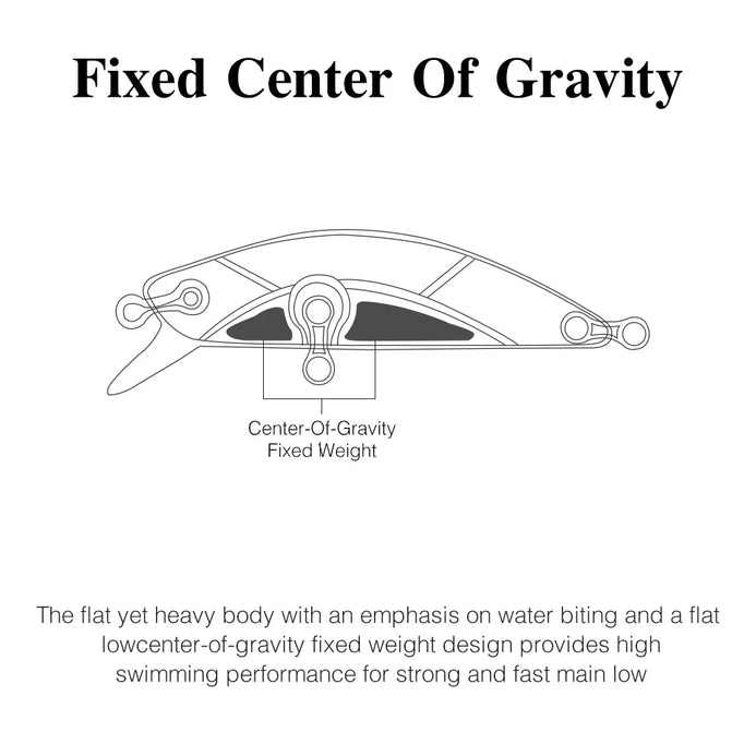 The flat heavy body with an emphasis on water biting and a flat, low center of gravity fixed weight design provides excellent swimming performance for the strong and fast main streams. -