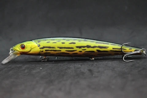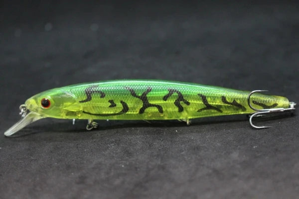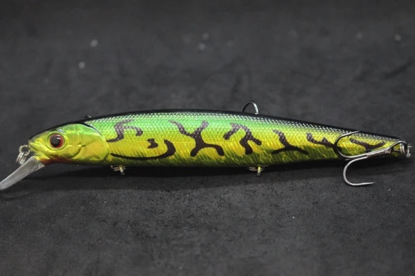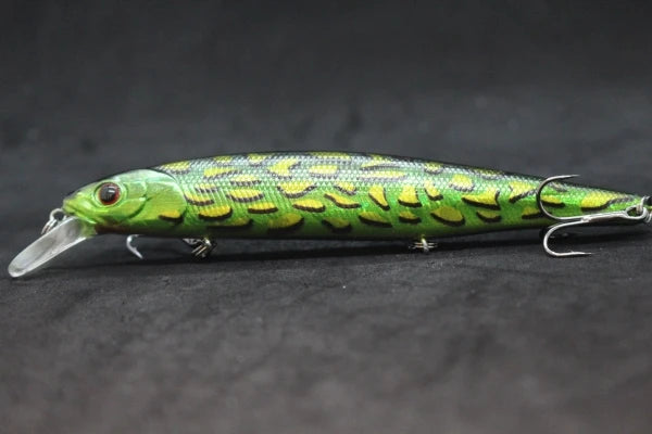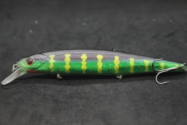 We at wLure are thrilled to introduce our latest and best fishing lure, measuring 14 cm in length, with a body length of 12.5 cm, and weighing in at 24 g. This lure is designed as a jerkbait, featuring a tight wobble that makes it ideal for catching a wide range of fish species.