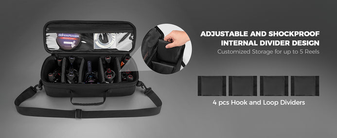 Adjustable Shockproof Dividers: The KastKing Fishing Reel Case is distinguished by its adjustable shockproof dividers, offering unparalleled versatility and customization for your fishing gear. These shockproof dividers ensure secure accommodation for various fishing reel sizes and types. The case is equipped with four hook-and-loop dividers for the medium size and eight for the large size, allowing for tailored storage configurations that meet the exacting demands of discerning anglers.
