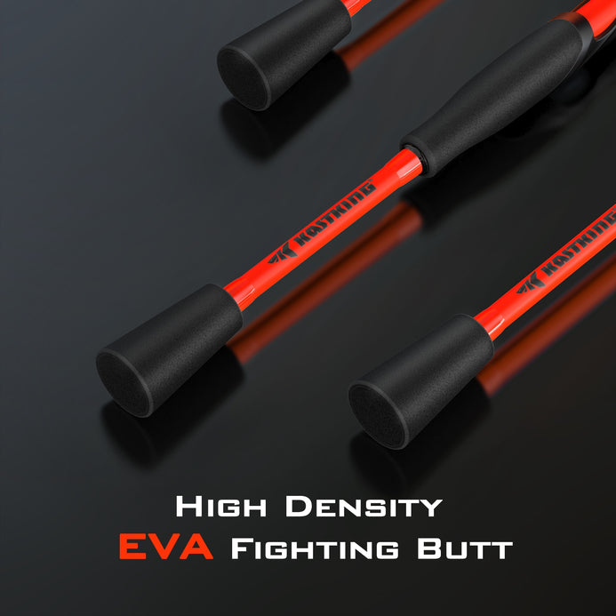 • 【KastFlex IM6 Graphite Spinning Rods】 –KastFlex IM6 Graphite blanks are highly sensitive, light and incredibly powerful. The high carbon construction enhances the slightest bites and provides the power to penetrate hooks quickly and consistently, so you land more fish. These extremely light spin fishing rods are perfect for most freshwater species and there are even models that will perform in some inshore saltwater applications.