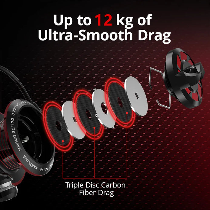 • DURABLE FEATURES – This KastKing Royale Legend II fishing reel gives you 5 remarkable double shielded stainless steel ball bearings, precision machined high-alloy and brass gears, up to 12kg of carbon fiber drag, zero-rust graphite frame and body, aerodynamic carbon rotor, and stainless steel hardware.