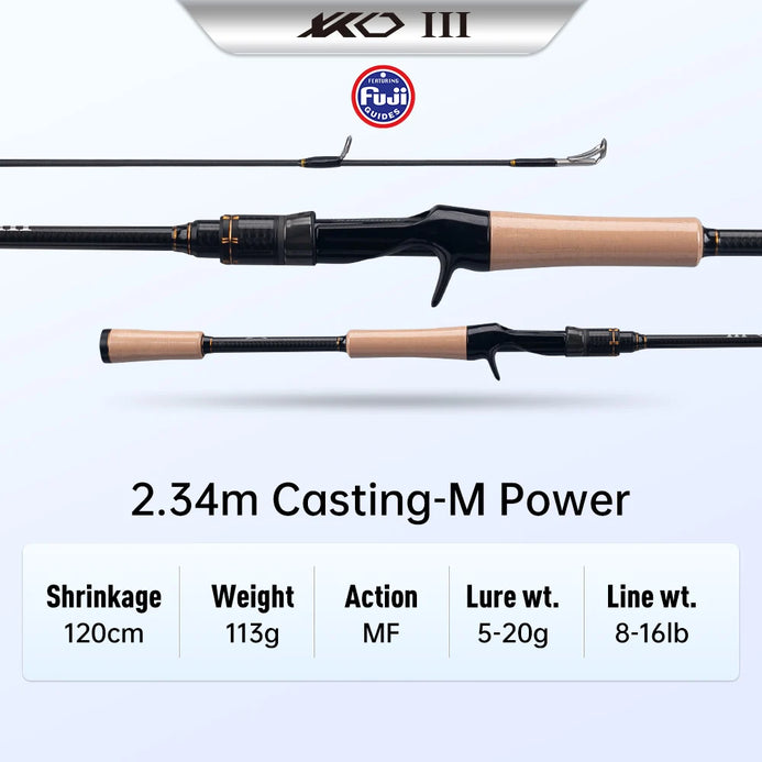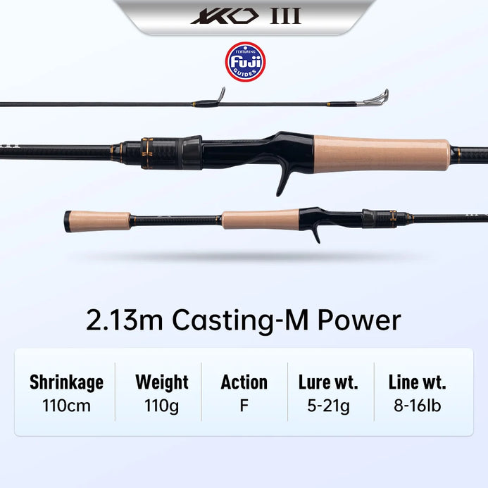 The Kingdom KO-Ⅲ High Carbon Rod offers versatile performance with length options ranging from 6'5" to 8' in light to medium-heavy power ratings. Crafted from high carbon material, this two-piece spinning and casting rod delivers exceptional sensitivity and strength, ideal for precise casting and reliable hook sets. Its balanced design ensures comfort during extended fishing sessions, making it a dependable choice for anglers seeking both durability and responsiveness across various freshwater and light saltwater applications.