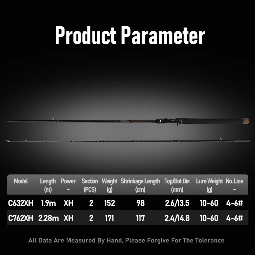 Precision Specifications for Demanding Anglers. The SAVA BLADE series offers robust XH (Extra Heavy) power models like the 1.9m C632XH and 2.28m C762XH. Designed for 10-60g lures and 4-6# line, they provide the backbone for heavyweight tactics. (Note: All parameters are hand-measured; slight tolerances may apply.)