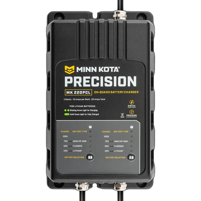 Minn Kota On-Board Precision Charger MK-212 PCL 2 Bank x 6 AMP LI Optimized Charger Minn Kota On-Board Precision Charger MK-220 PCL 2 Bank x 10 AMP LI Optimized Charger Minn Kota On-Board Precision Charger MK-230 PCL 2 Bank x 15 AMP LI Optimized Charger