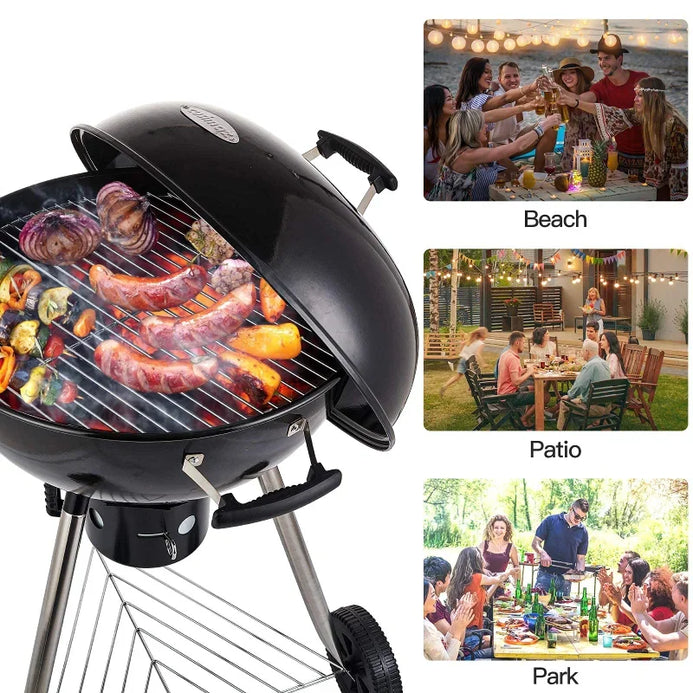 CONVENIENT HEAT CONTROL - Charcoal barbecue grill features easy slide air vents and built-in lid thermometer for easy temperature control, bringing a better cooking taste to your favorite meals. Besides, the BBQ grill is made of superior durable enamel materials which is treated with high temperature resistance to help prevent rusting, thus extending its service life.