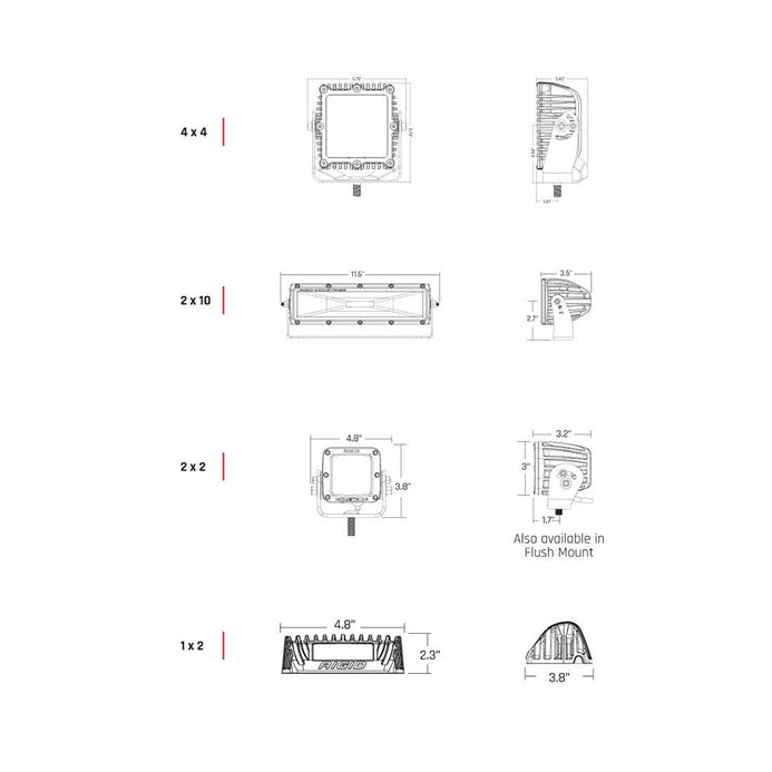 RIGID Industries 1x2 65° DC Scene Light prodcues 1100 raw lumens and features a vertical spread of 69° and a horizontal spread of 65°. Using the latest LED technology, all new patent pending optic system, minimal amp draw, and extreme output, the 1x2 65° Scene Light is the perfect area lighting solution. This versatile light can be mounted to your RV, toy hauler, tractor trailer, fire truck and can even be mounted to the undercarriage of your vehicle. Limited Lifetime Warranty.