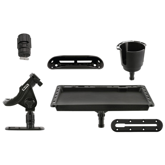 Fishing essentials for outfitting your Kayak. The Kayak Starter Pack includes a 282 Baitcaster Spinning Rod Holder with Gear Head & Track-Holds a bait caster reel securely in the cushioned cradle. 438 Gear Head Track Adapter-slide the Gear Head into any of our 440 series track, twist the gear head clockwise to securely lock. 440-4 4” Low Profile Track-top load design allows for quick and easy setup. 311 Drink Holder-fits cans, coffee mugs and insulated sleeves. 136 Paddle Clip-holds your paddle, net, gaff & boat hook. 455 Baitboard & Accessory Tray-Exterior tray walls lets you cut bait and prep lures. Also included are your Stainless steel fasteners-18 pieces #10 x 5/8.