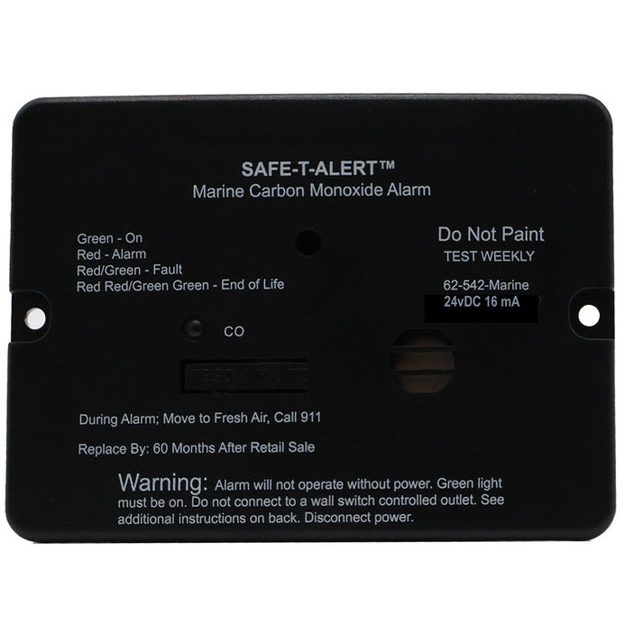 Safe-T-Alert 62 Series Marine Carbon Monoxide Alarm - 24V Flush Mount - Black