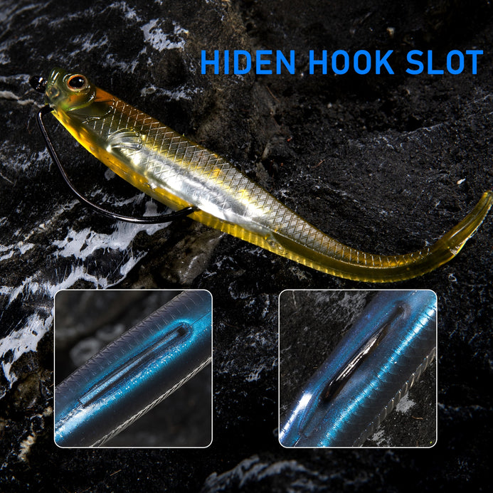 Extremely lifelike swimming action. Features a hard-pounding paddle tail to create enticing kicks and wiggles to drive fishes crazy, luring them to attack.