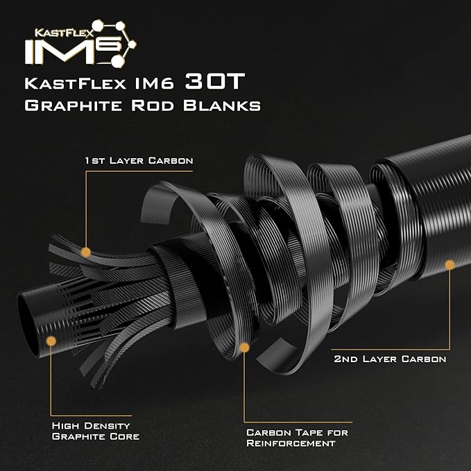 - 【KastFlex IM6 30T Graphite Blanks】 - These multi-piece graphite travel rods pack small but perform like 1 and 2 pc rods. Using our proprietary KastFlex IM6 30T graphite blanks, Passage rods are light and sensitive. The high carbon construction provides the power to penetrate hooks quickly and consistently and are sensitive enough to detect the lightest bites. They are perfect for most freshwater species and even some saltwater applications.