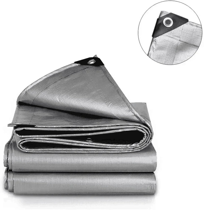 FUNCTION - The surface of tarp is coated with silver, sunscreen & heat insulated. Has a better sun protection effect. Tarp is appropriate for extreme weather and jobsite conditions such as strong sunshine, wind, frost or hail. Tarps will provide the best protection, 100% waterproof, sunshading, Anti-UV.