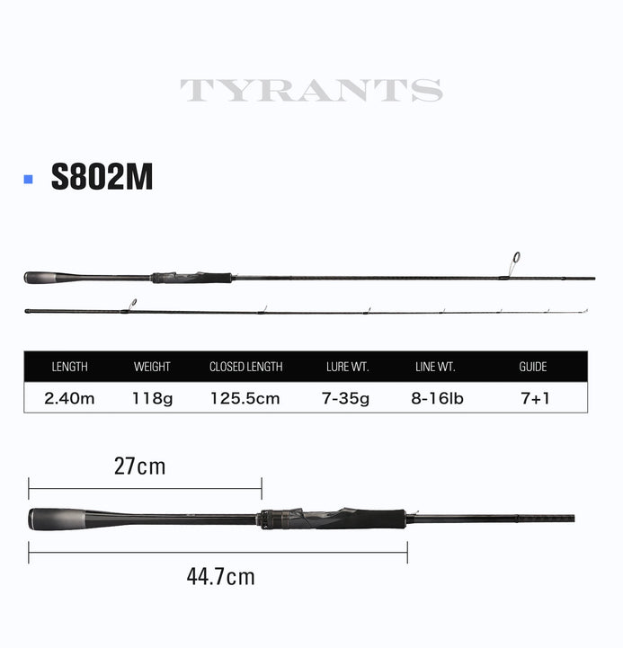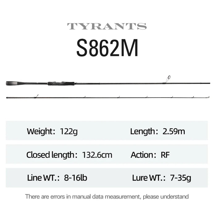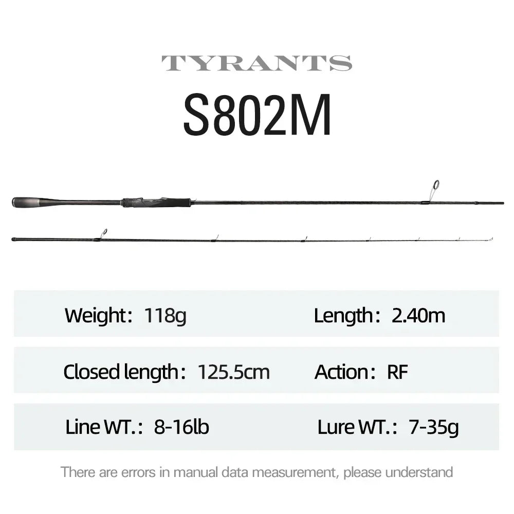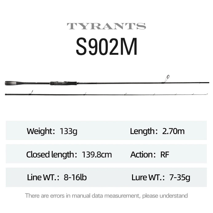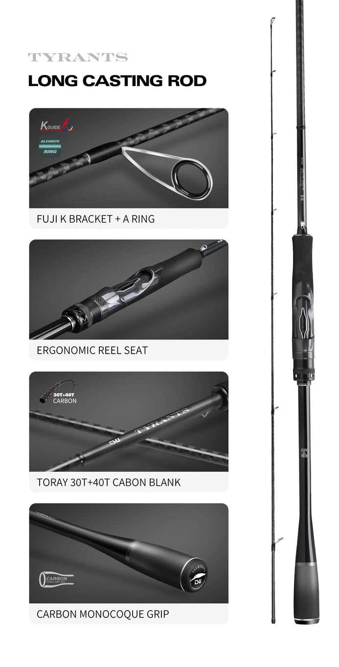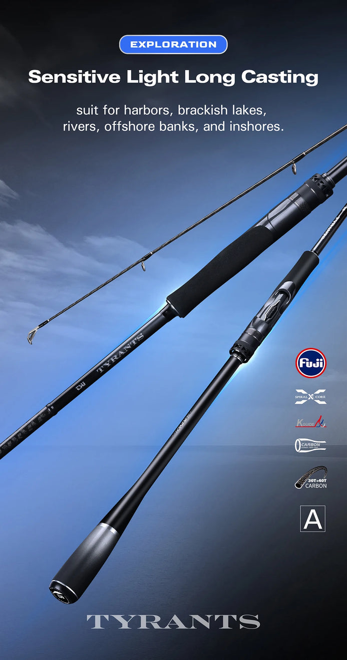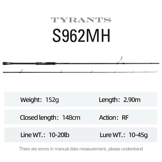 Experience powerful fishing with the Tsurinoya TYRANTS Spinning Rod. Choose from 2.4m, 2.7m, or 2.9m lengths and enjoy fast action with medium or medium-heavy power. This 2-piece rod is perfect for handling big catches and will elevate your fishing game to the next level.
