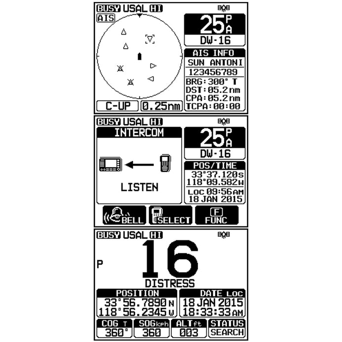 The Quantum GX6000 displays AIS target information (MMSI, Call Sign, Ship Name, BRG, DST, SOG and COG) on the large front panel display. Having this information allows you to contact an AIS Ship directly using DSC, shows your vessels position in relation to AIS targets and alerts you when an AIS ship may be approaching too close to your location via the Closest Point of Approach (CPA) Alarm.