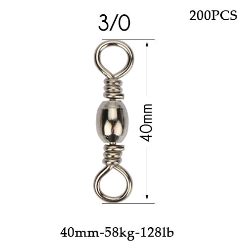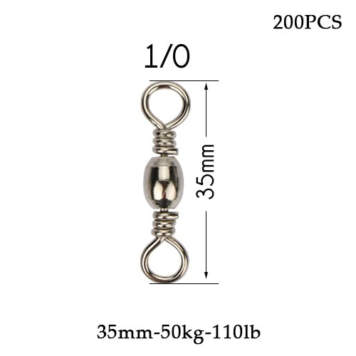 Goture 200pcs/lot Size 10, 8, 6, 4, 2, 1/0 Rolling Barrel Swivels
