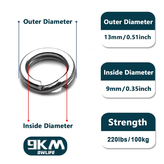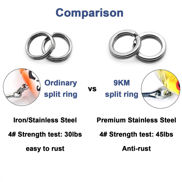 * The high-quality material and the high-strength flattening process of the machine greatly increases the strength of the ring. Reduces the risk of being pulled apart by fish. Even after opening to fit larger hooks, these split rings will remain closed without retaining memory.