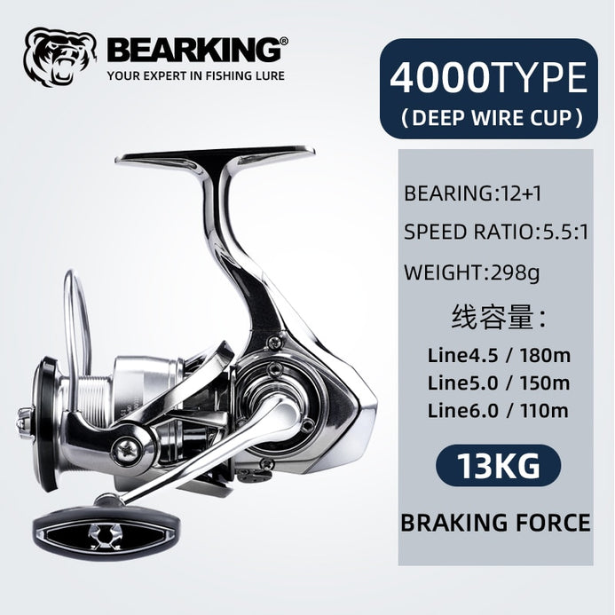Experience an adrenaline rush with the absolutely GORGEOUS BearKing Silver Soul 12+1BB 5.1:1/5.5:1 15Kg Max Power Spinning Reel. This high-performance spinning reel with 12+1 Ball Bearings and two available gear ratios offers unparalleled smoothness and power for confident reeling. Feel the power of 15Kg max power and enjoy a fishing adventure like never before!