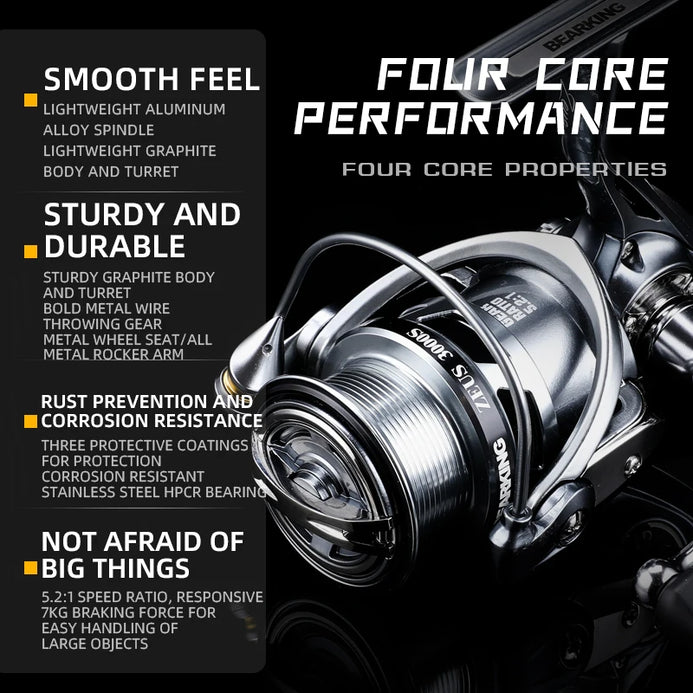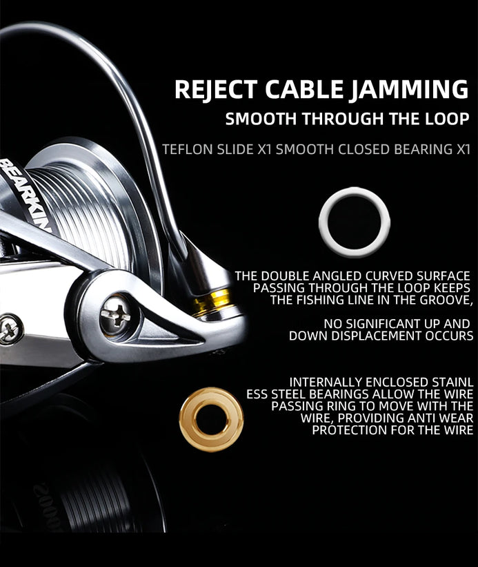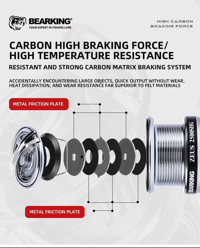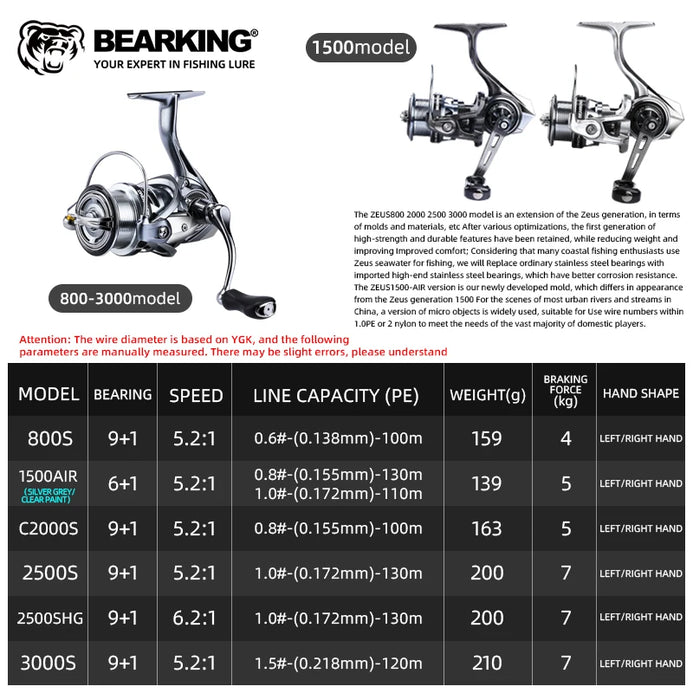 Experience the ultimate fishing advantage with the BearKing Zeus II Series Spinning Reel. Featuring 6-9 premium ball bearings for silky-smooth operation and responsive performance when it matters most. Choose between 5.2:1 or 6.2:1 gear ratios to perfectly match your technique, while the impressive 4 to 7Kg maximum drag gives you the power to control even the most aggressive fighters. Don't settle for less when your trophy catch is on the line.