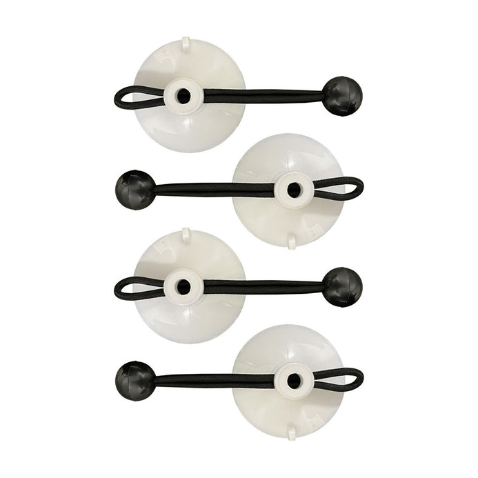 Perfect for hundreds of tie-down applications without an anchor point, cleat, or another device to anchor conventional tie-downs. Giant 3-1/4″ suction cups with toggle ball ties stick to auto finishes, smooth flat boat finishes, and windows. Great for mooring! 6″ ties stretch to 11″. Available in 4 or 8-Pack.