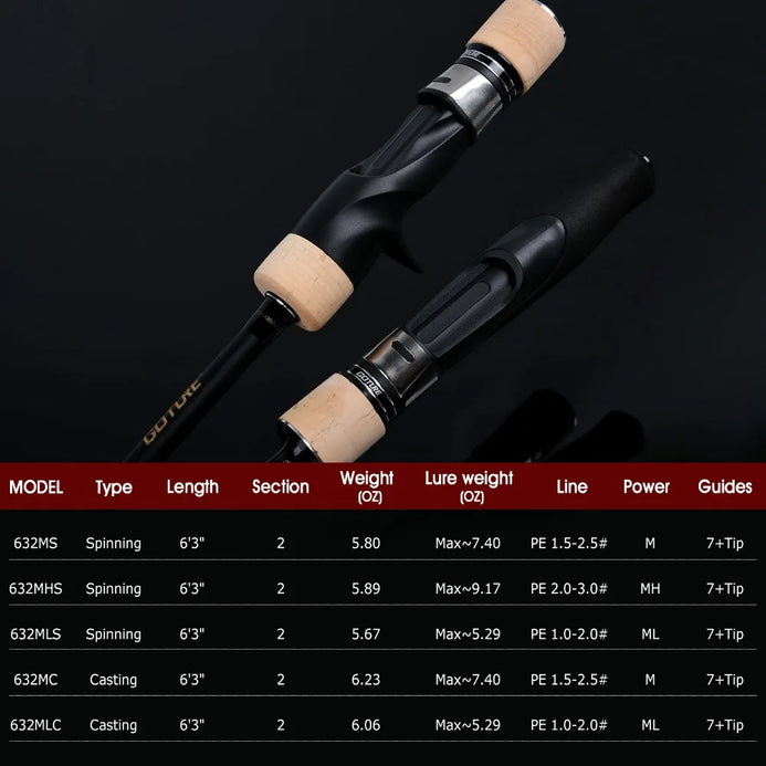 Goture POLLUX II Slow Jigging Casting/Spinning Rod M MH ML Power 2PC 1.89m