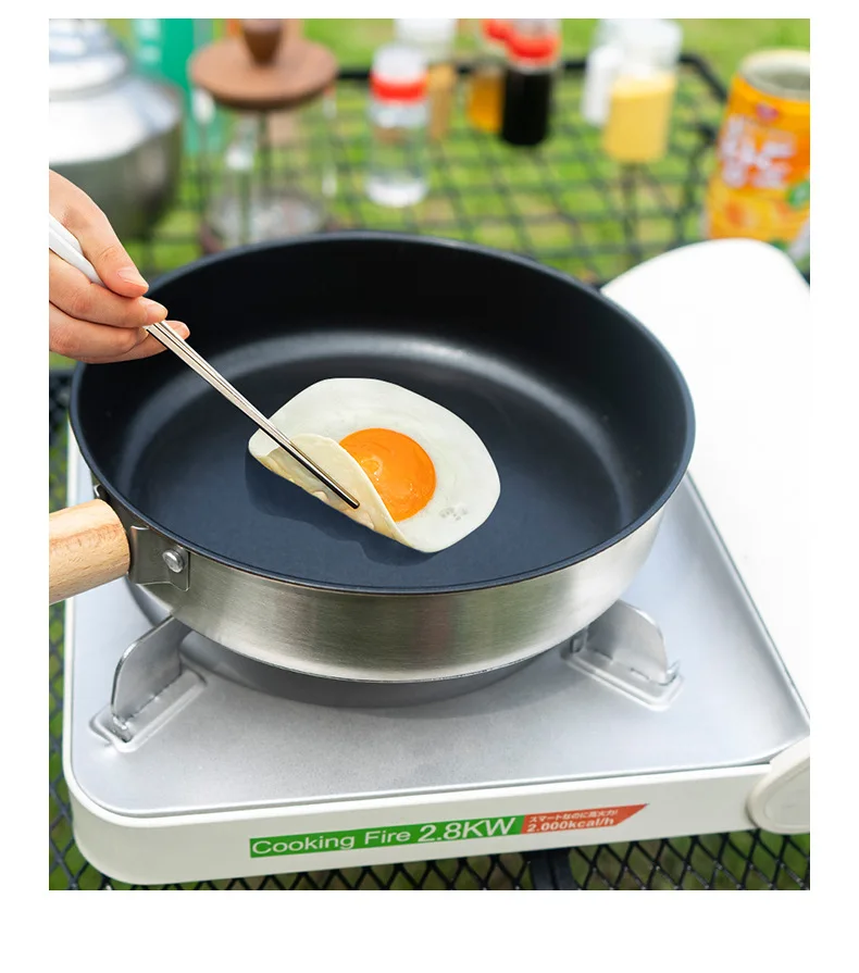 Material: Main body -304 stainless steel, accessories - partially non stick coating/solid wood