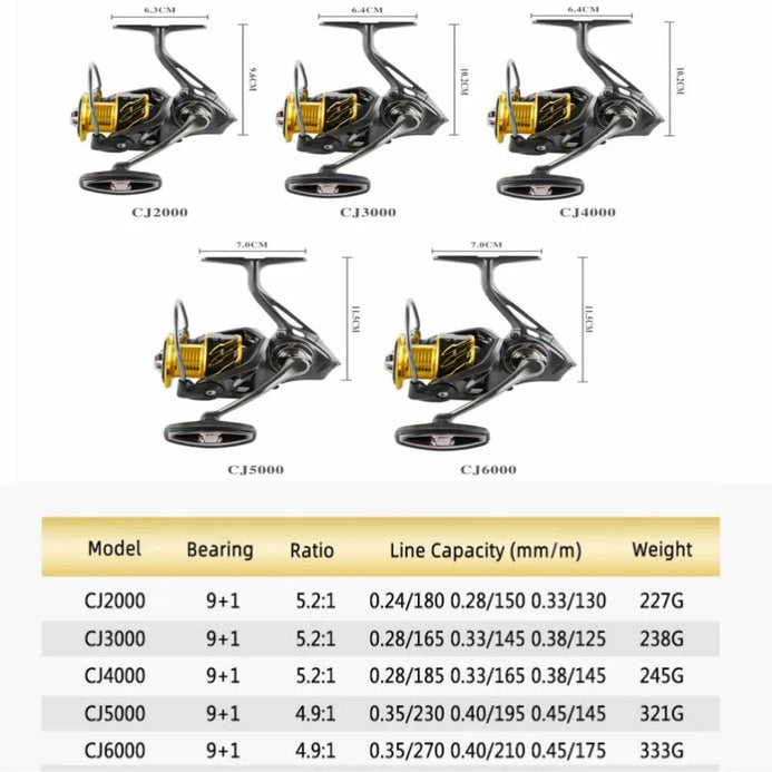 Model: CJ3000 | Bearing: 9+1 | Ratio: 5.2:1 | Line capaciy (mm/m): 0.28/165 0.33/145 0.38/125 | Weight: 238g