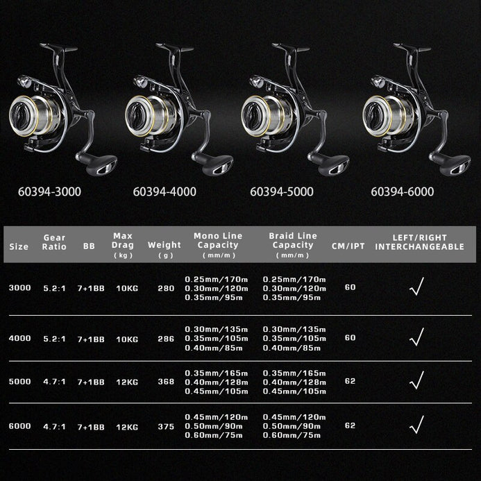 MiFiNE Aurora Spinning Reel 7+1BB Ultralight 5.2:1/4.7:1 10Kg Max Drag