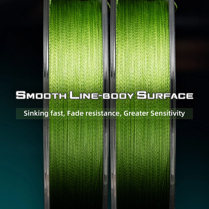 SMOOTH BODY SURFACE - Braided line has super smooth line body surface can sink fast and enable efficient casts.