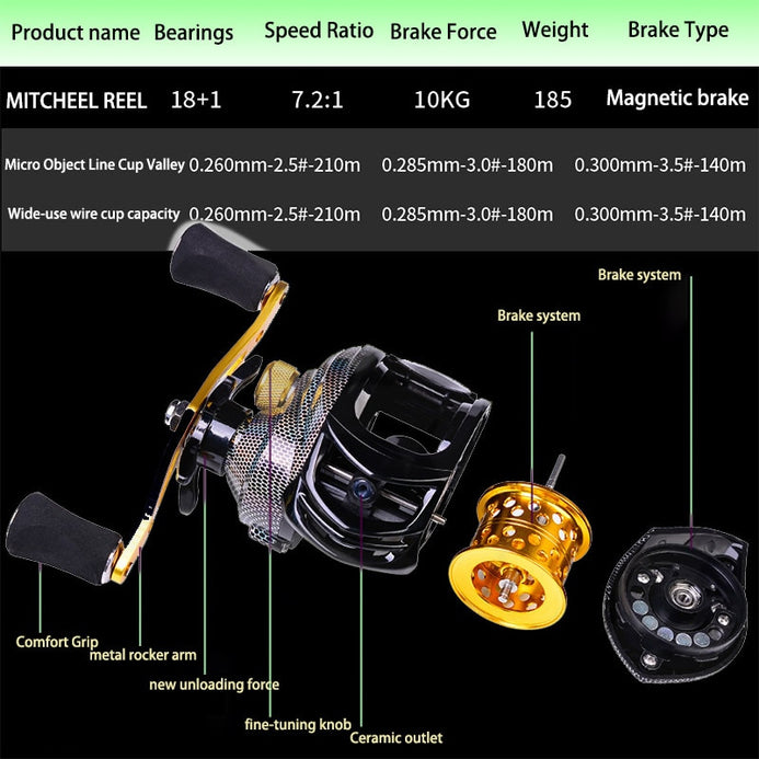 MITCHELL DW Series Ultralight Baitcasting Reel 7.2:1 Ratio 18+1BB 10Kg Max Drag MITCHELL ESCORT RZ-7 7.2:110KG MAX Ultralight Baitcasting Reel MITCHELL GY Series 8-12KG Max Drag 5.2:1 12+1BB Spinning Reel
