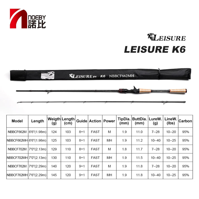 The Noeby Leisure K6 delivers serious performance without the serious price tag. This two-piece casting and spinning rod punches above its weight with responsive sensitivity and backbone that handles everything from finesse presentations to aggressive retrieves. Available in four lengths—1.98m through 2.43m—and three power ratings (ML, M, MH), you'll find the exact setup to match your technique and target species. Built for anglers who refuse to compromise on quality or versatility, the K6 transforms your fishing game with precision engineering that keeps you connected to every bite.
