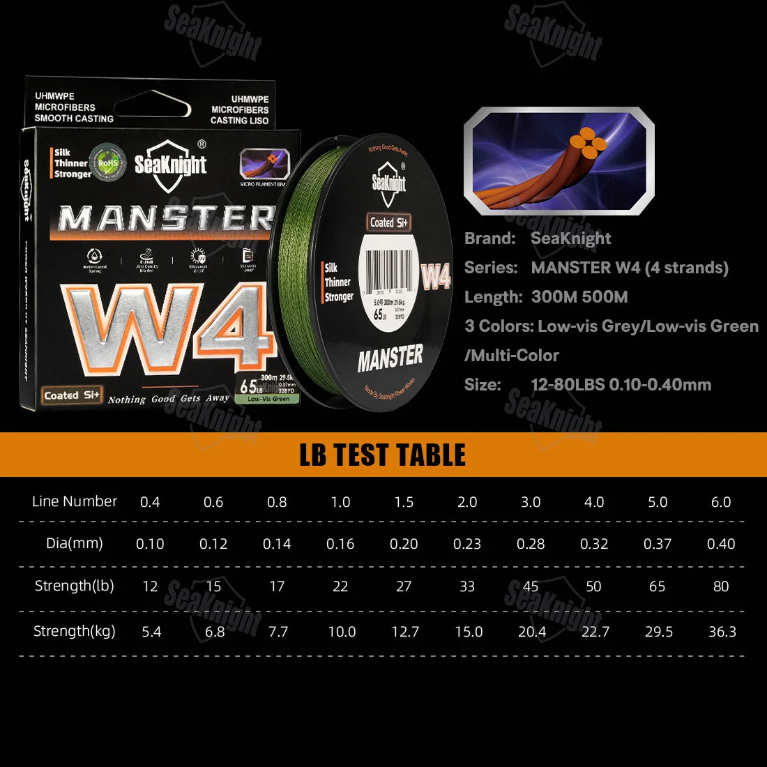 SeaKnight W4 Series Line X4 PE Braided Line 12-80LB 300M/500M 0.4#-6.0#