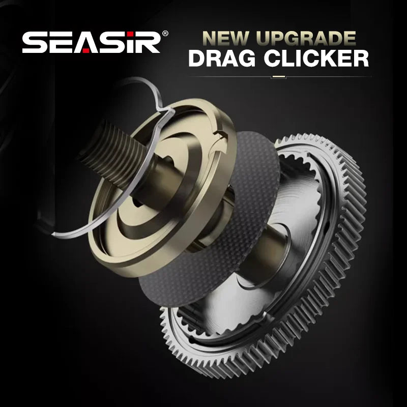 12. New upgrade drag clicker: Helps fishermen detect every signal of a fish biting the bait. Using a new generation of drag clicker system, the sound is more delicate and uniform. The new structure is not easy to be damaged. More durable.