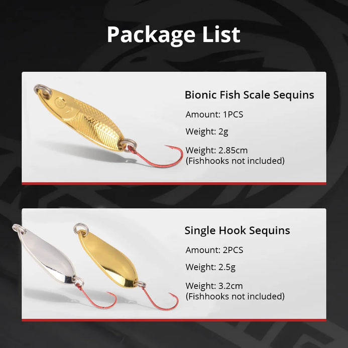 These kits include one of each of the following – Bionic Fish Scale Sequins,Single Hook Sequins