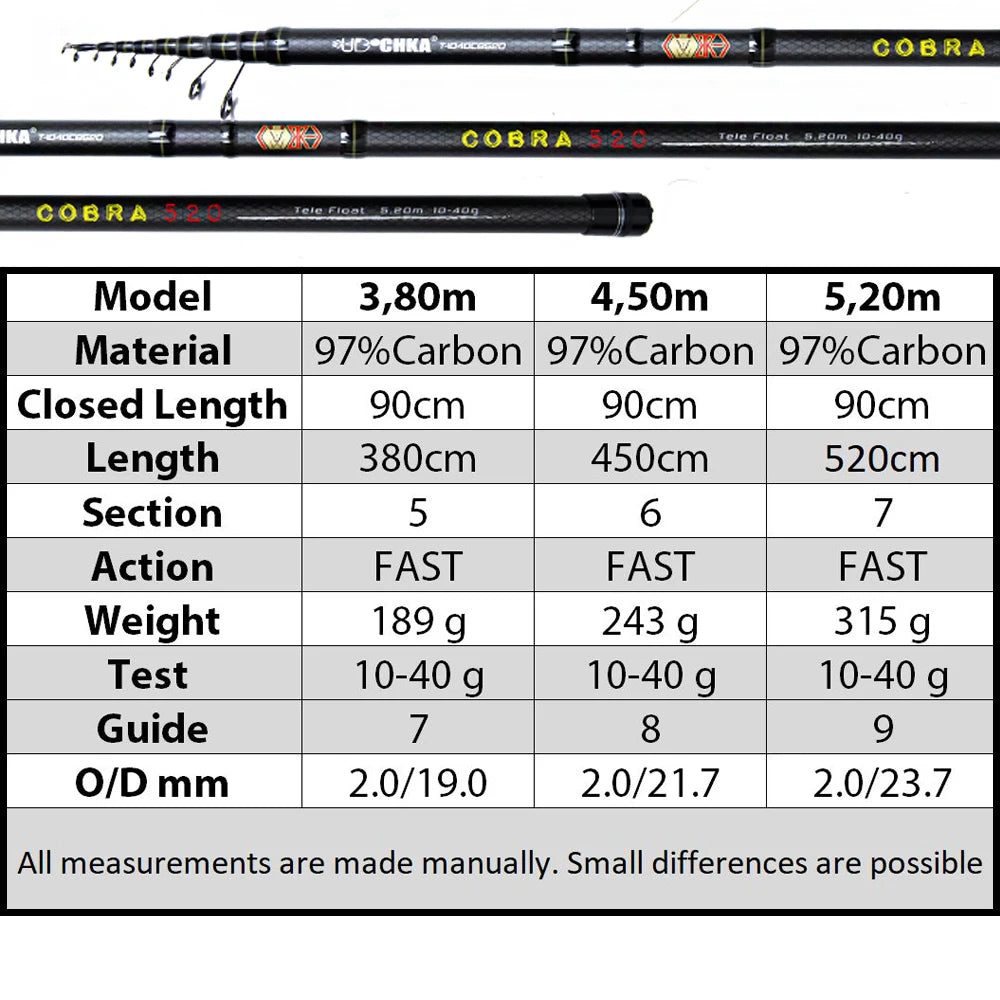 UDOCHKA Cobra Telescopic Spinning Carbon Rod FAST 3.8m 5.2m