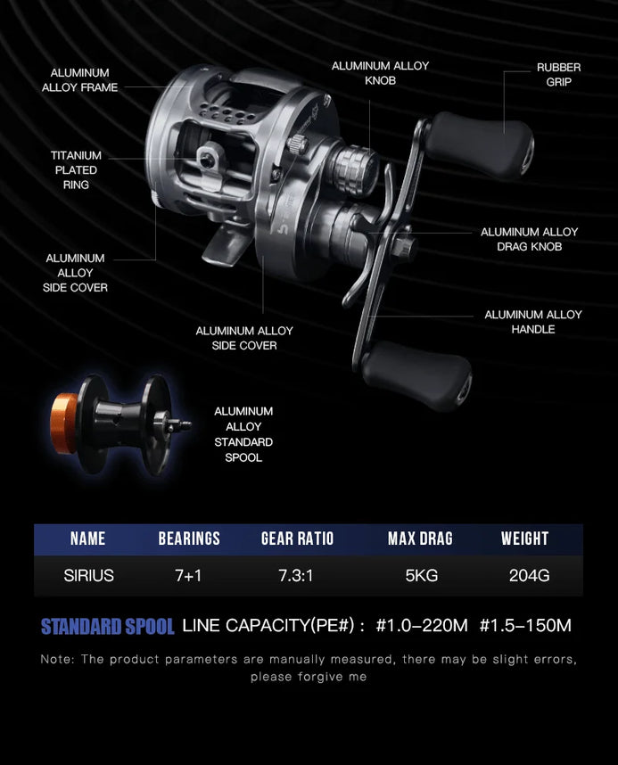 Seasir Sirius Baitcasting Reel 7+1BB NMB 7.3:1 Max Drag 5kg