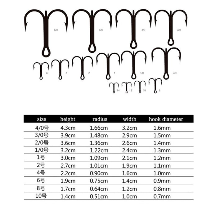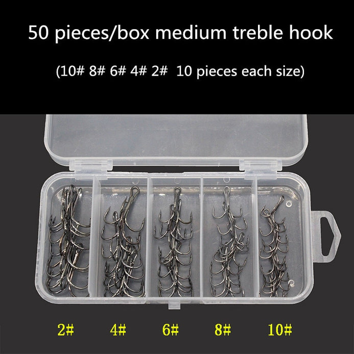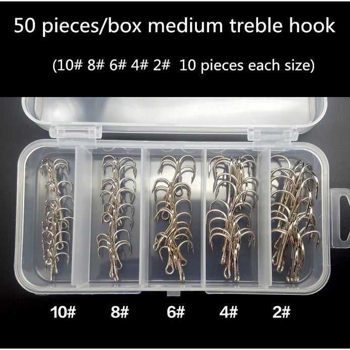- Treble Fishing Hook Set Sizes - 50pcs/lot
