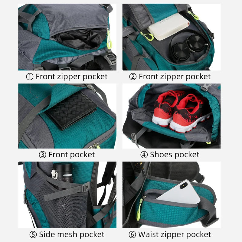 75L Camping Backpack Men's Travel Bag With Rain Cover Outdoor Hiking Daypack Mountaineering Bags Large Sports Luggage Rucksack