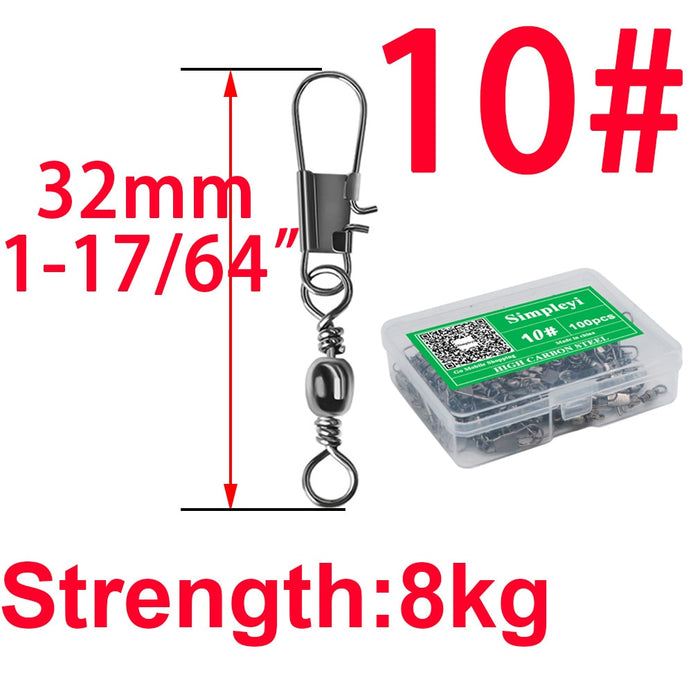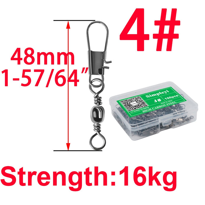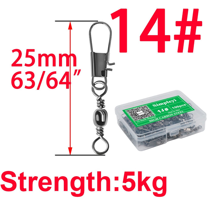 100pcs/box 4# To 14# Interlock Snap Ball Bearing Swivel Rolling Solid Rings