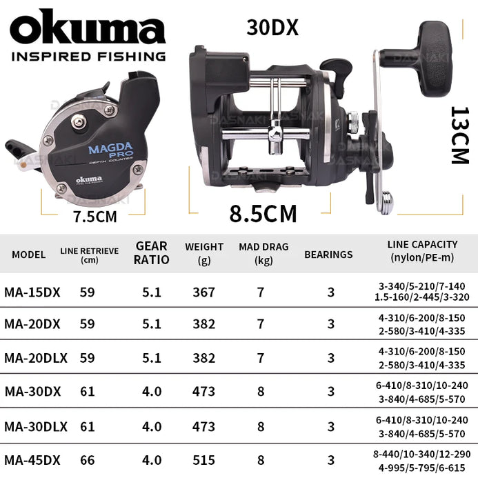 Okuma MAGDA Linecounter DT MA-15DT-T Baitcasting Reel 7-8Kg Max Drag 3BB 5.1 4.0