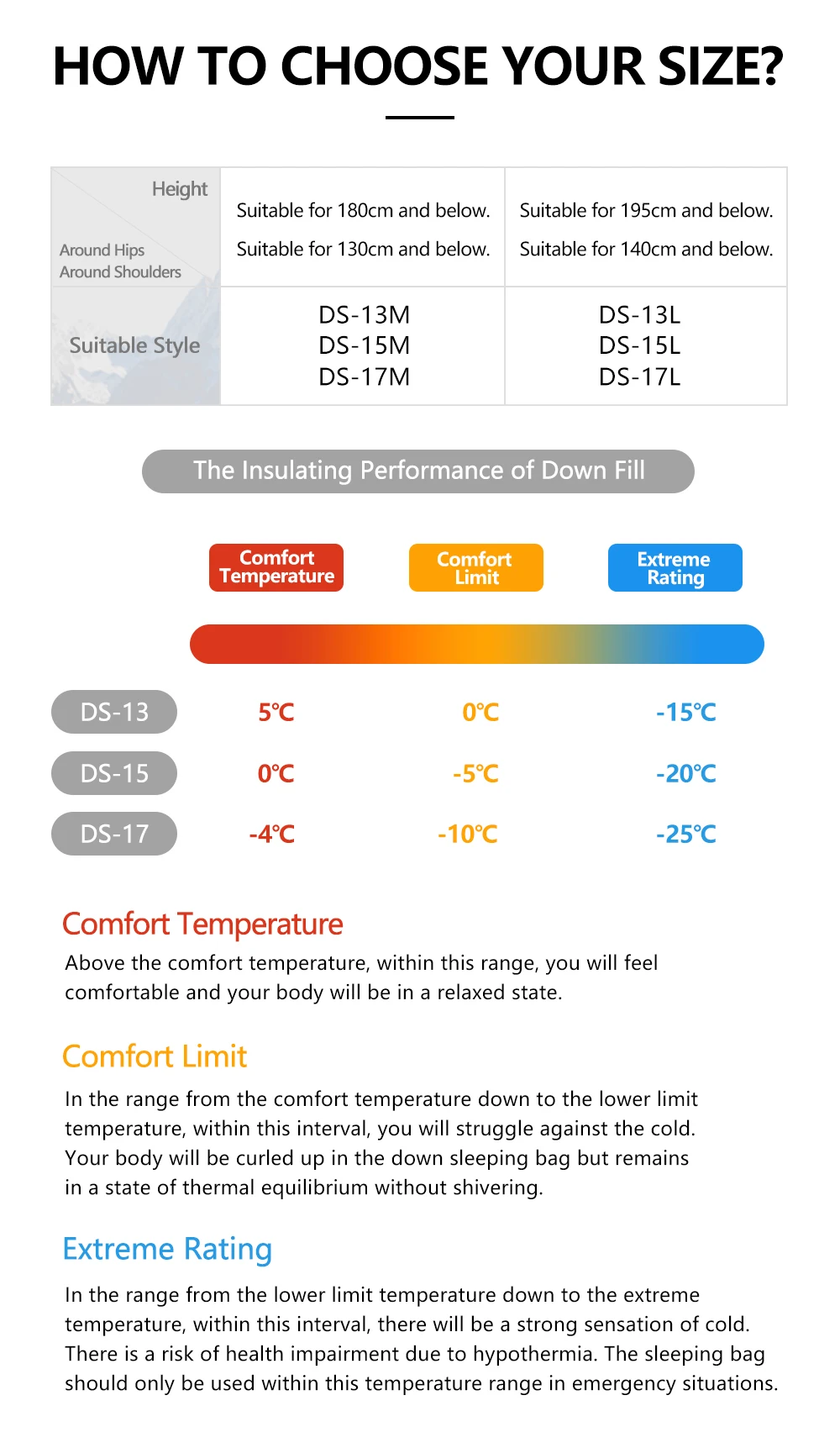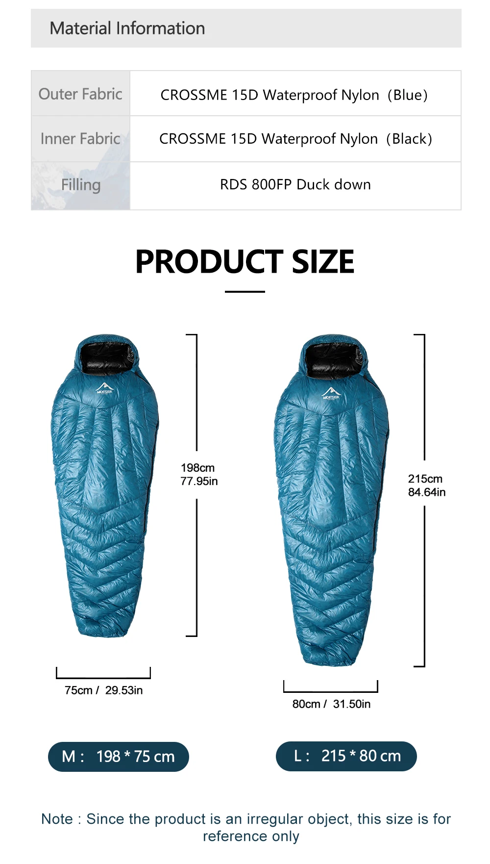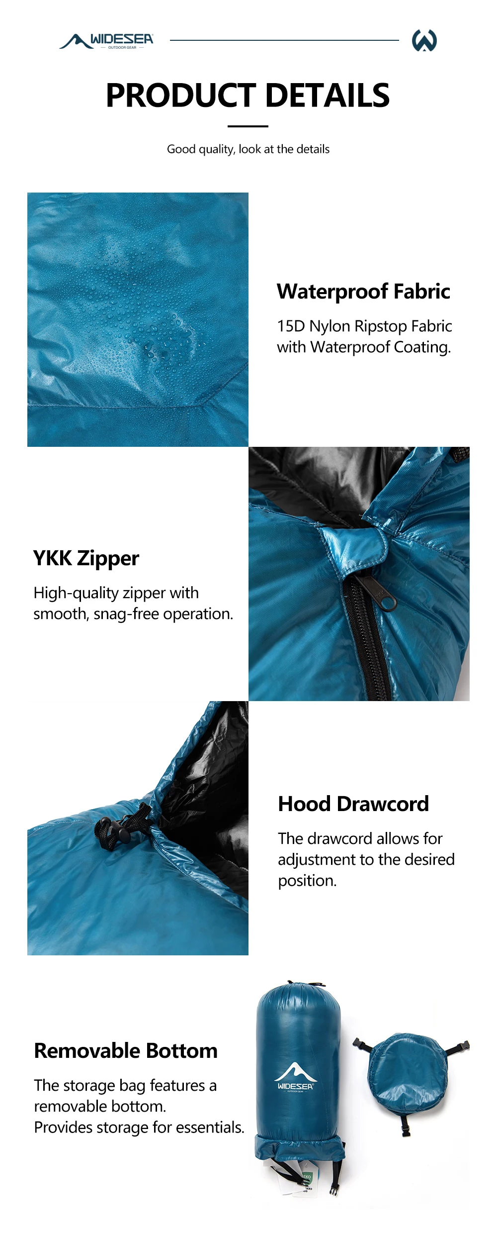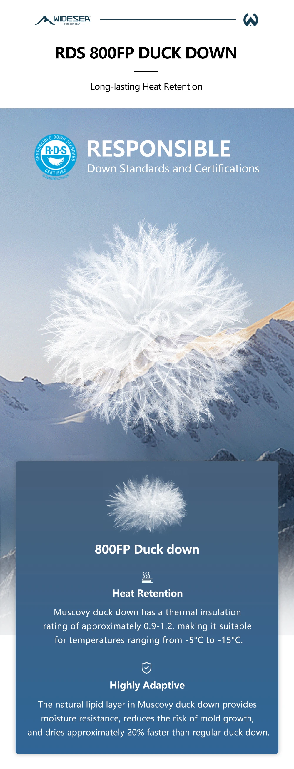 WIDESEA DS Series High Altitude 800PF Duck Down Mummy Sleeping Bag -10°