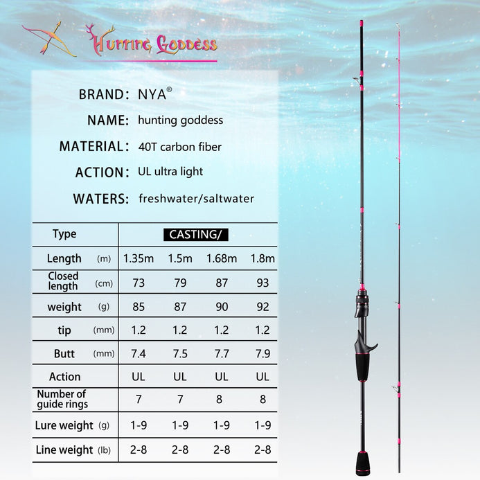 Hunting Goddess 1.35/1.5/1.68/1.8m UL 2PC Carbon Spinning/Casting Rod