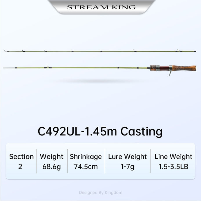 Kingdom Stream King Carbon Spinning/Casting Rod MF Action 2/3PC UL L 1.39m-1.65m