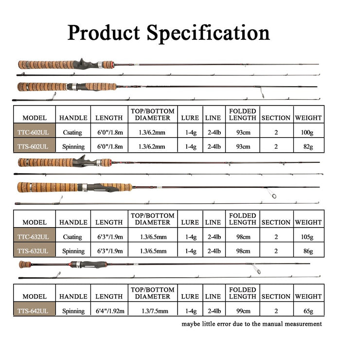 Medium Action; Lure:1-4g Line:2-4lb 7 Pieces rings